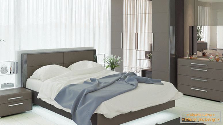 Nowoczesne style, cieszące się dużą popularnością (minimalizm, nowoczesność, high-tech), doskonale nadają się do organizacji małych sypialni. Zakładają obecność schludnych mebli bez dodatkowego wystroju, zastosowanie jasnych kolorów przy dekorowaniu ścian i sufitu. Podłoga jest również utrzymana w powściągliwych kolorach: może to być deska do parkietu, laminat lub dywan.